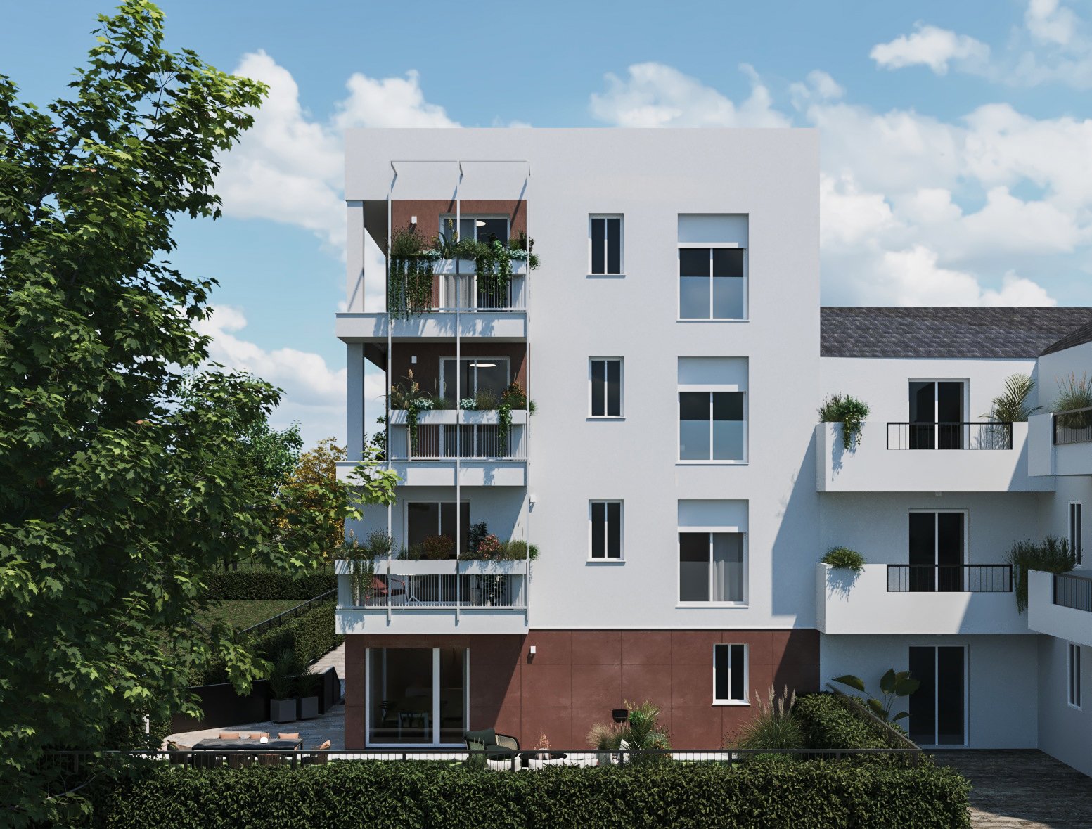 Edificio residenziale di nuova costruzione composto da sei appartamenti, progettato per accogliere famiglie e giovani coppie.